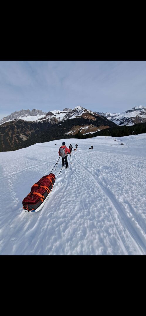 - Ausrüstung (Schneeschuhe, Stöcke, LVS-Set)