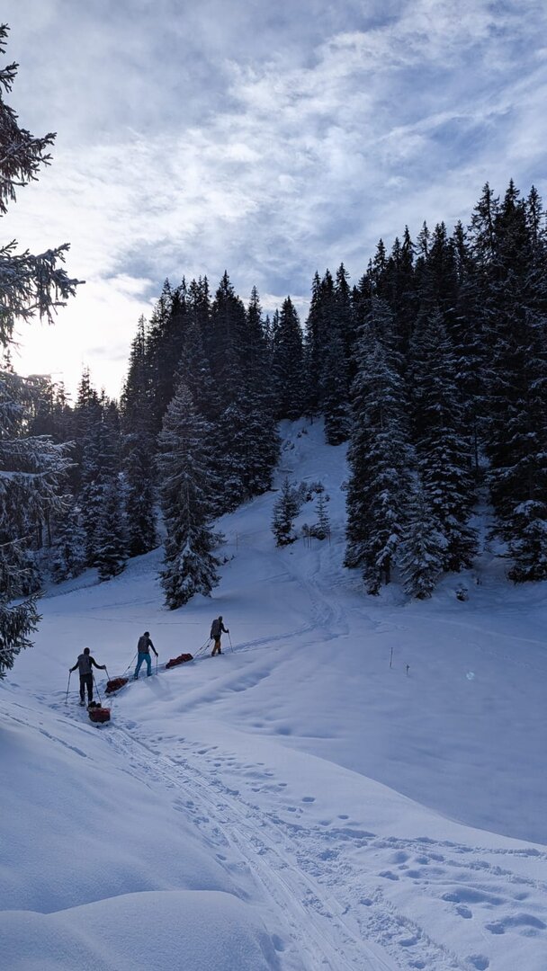 Erlebe mit 2000plus.ch dein einzigartiges Winterabenteuer in der Bergwelt von Graubünden im Prättigau. Ausgerüstet mit allem was es braucht um autark in tiefwinterlicher Landschaft unterwegs zu sein, tauchen wir in die stille Bergwelt von St. Antönien, hinter dem Mond links ein.
