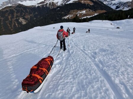 - Rucksack, Pulka, Zelt, Verpflegung (Abendessen und Frühstück)